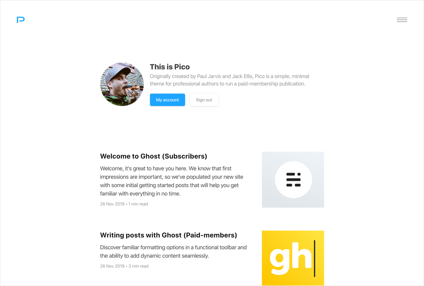 So, today we're thrilled to share Pico - a new open source premium publishing membership theme for Ghost, with Stripe subscriptions at its core.