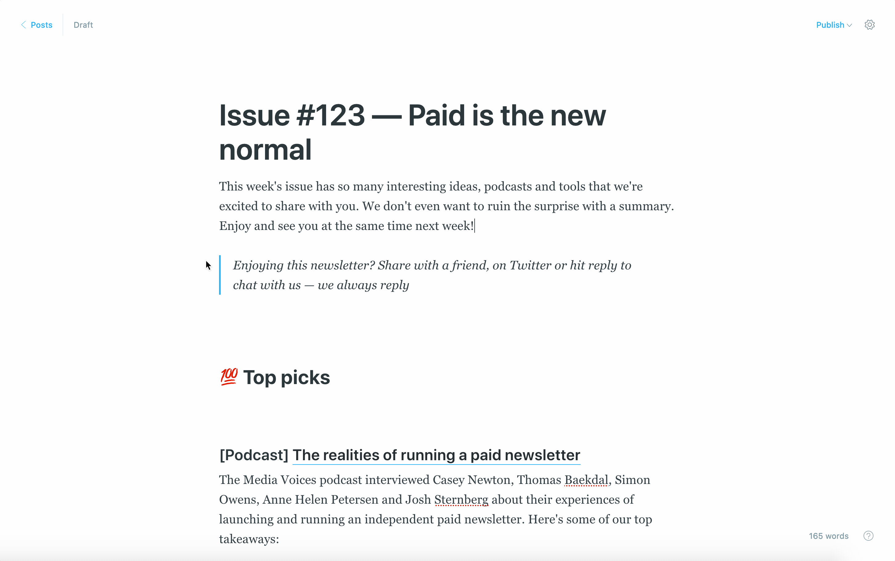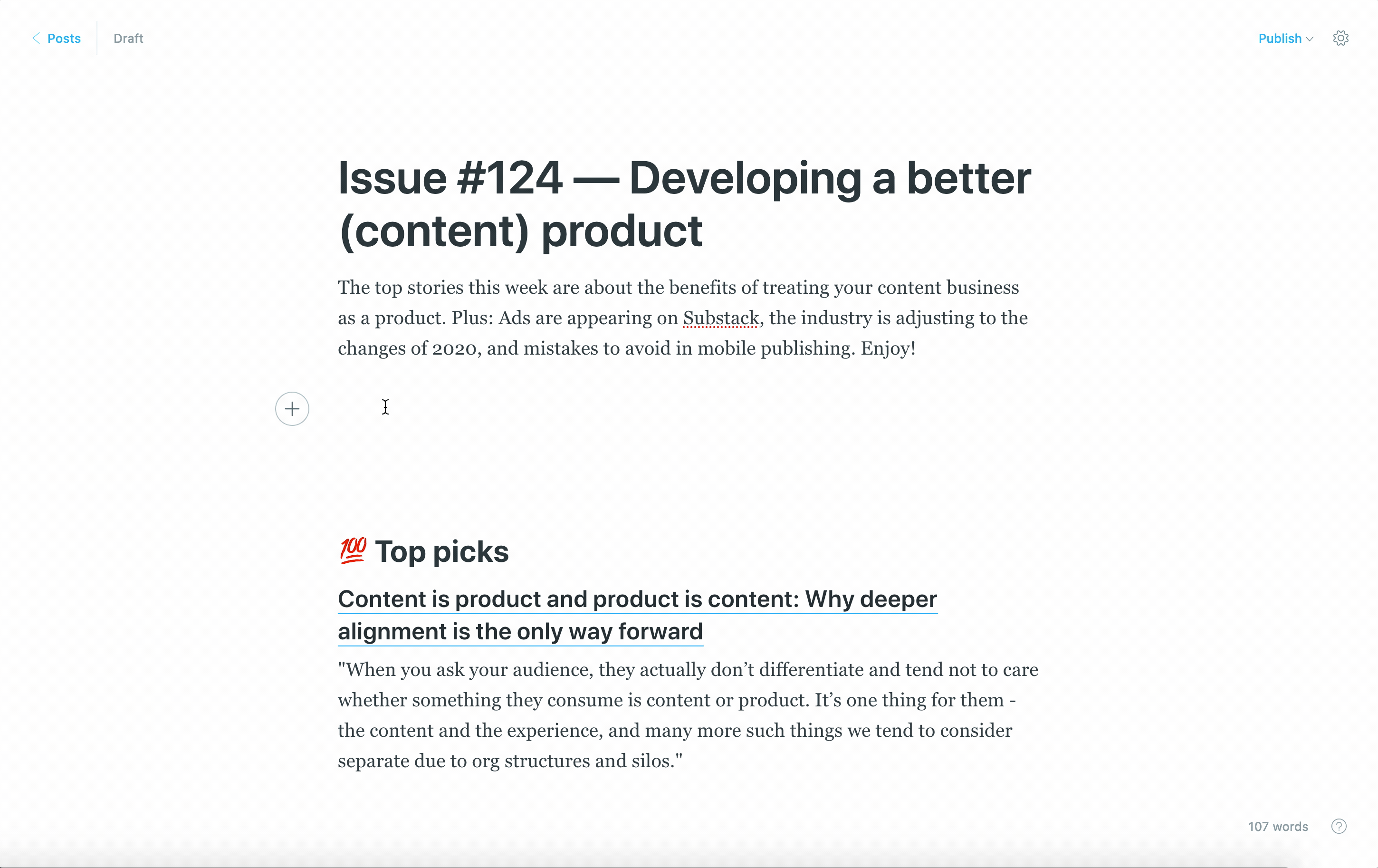 Content snippets are a useful way to store pieces of content you want to use in other posts, such as an image, a company logo, a newsletter template, an embed — or anything else that you want to use again.