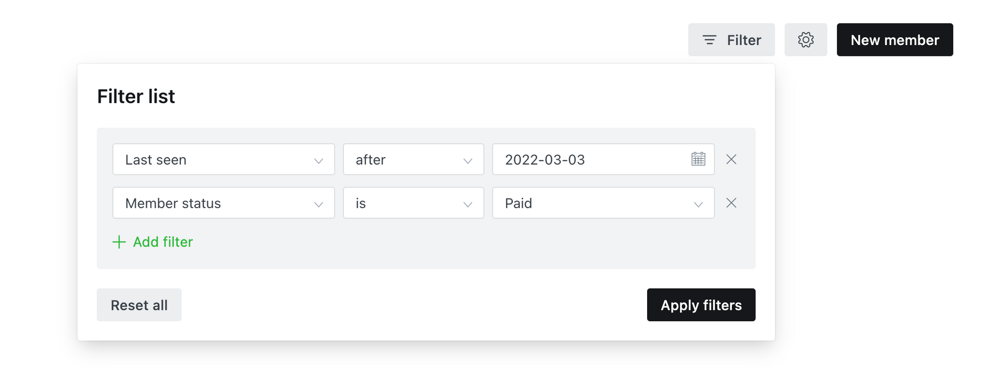 Along with the recent addition of date-based member filtering, you can now filter your members based on their engagement with your content.