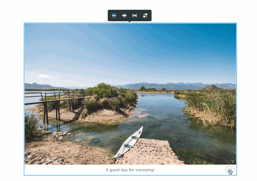 To write your alt tag, hit the alt button on the right in the caption line, type your alt text and then hit the button again to return to the caption text.