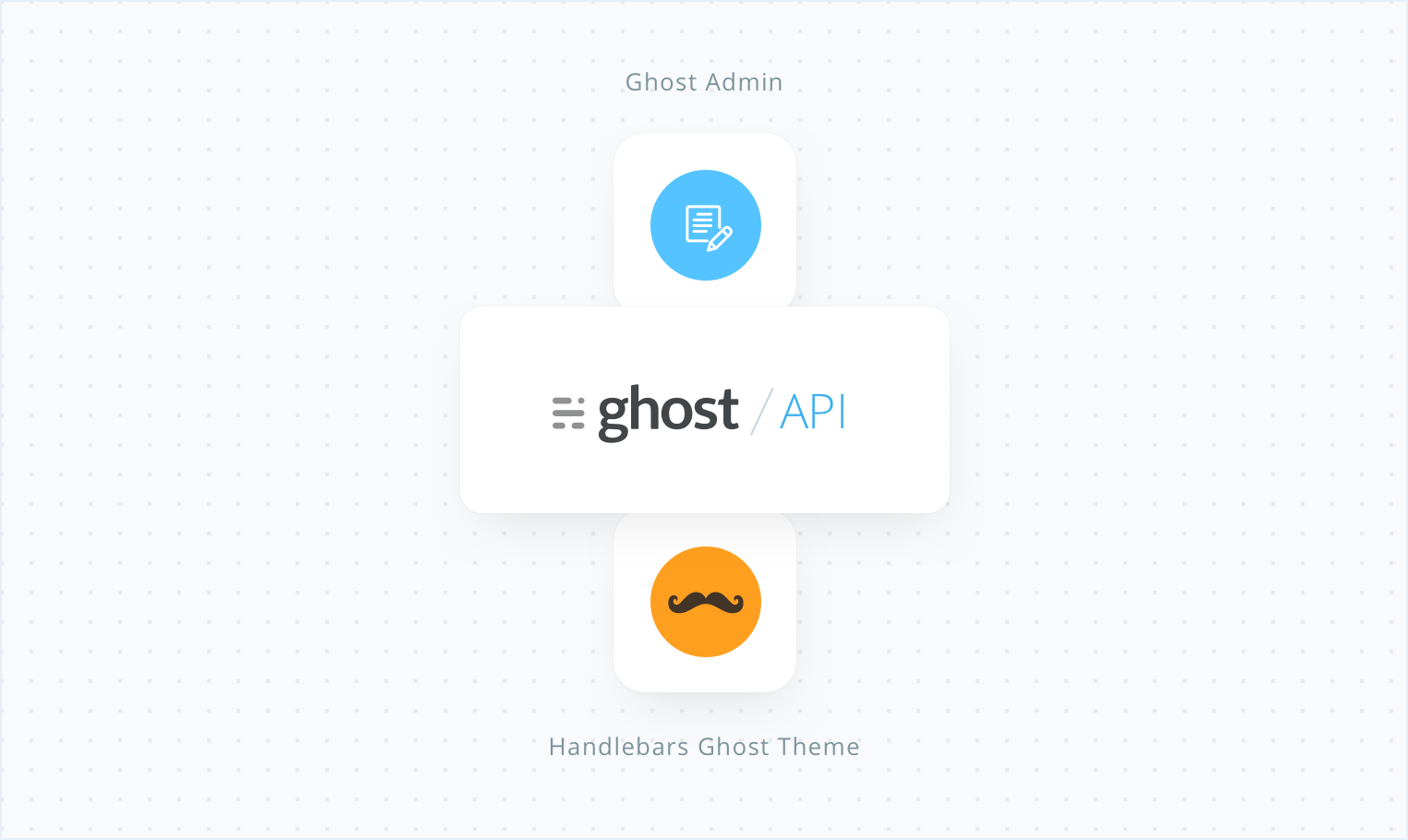 Ghost has always been architected into 3 distinct areas: A core Node.js API, an Ember.js Admin client, and a speedy Handlebars.js front-end theme layer. Until now those 3 areas have been fairly tightly coupled, so it hasn't been possible to use them separately.