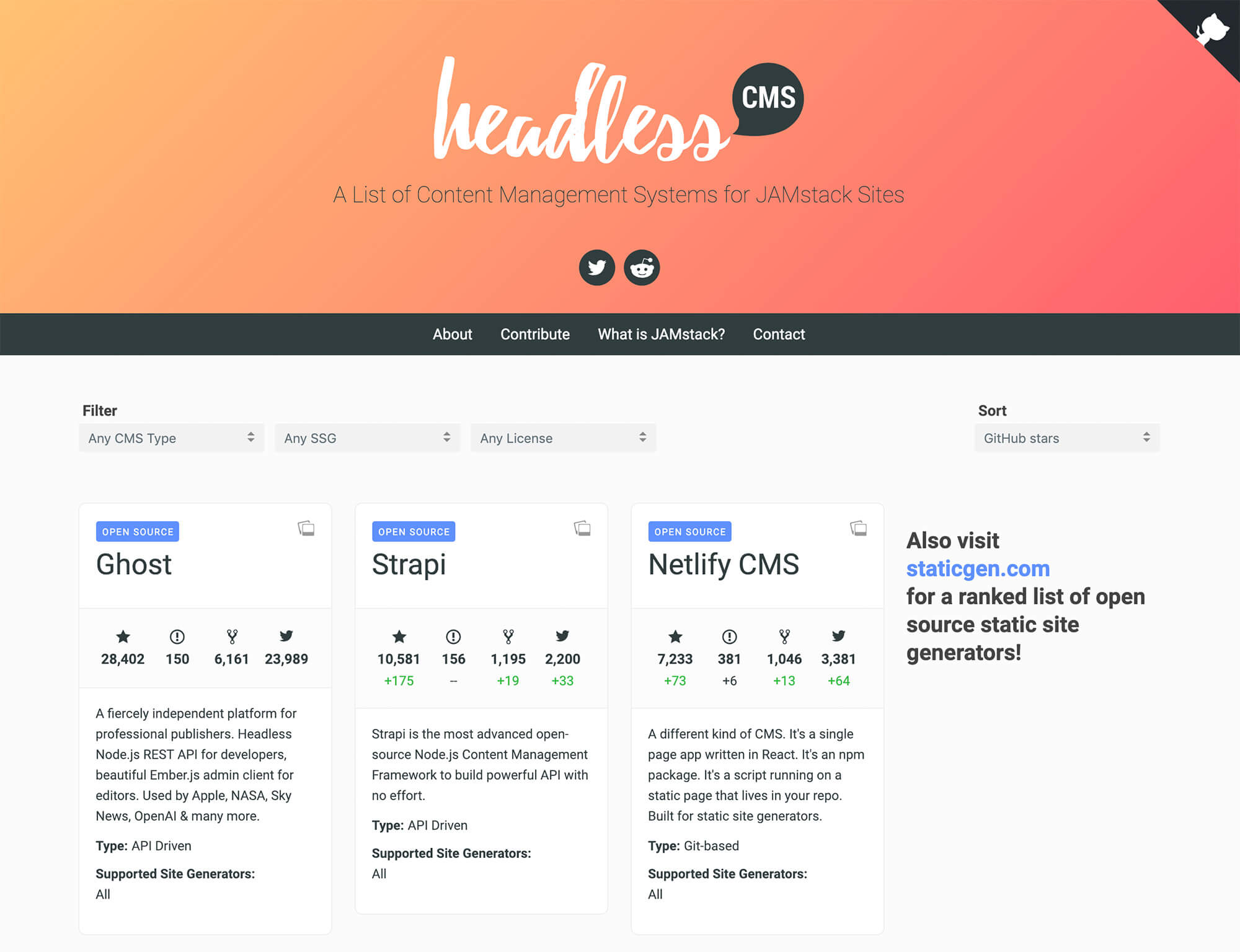 We're really excited to be a part of the JAMstack movement and, as of today, Ghost is now the biggest open source headless CMS project in the wild: