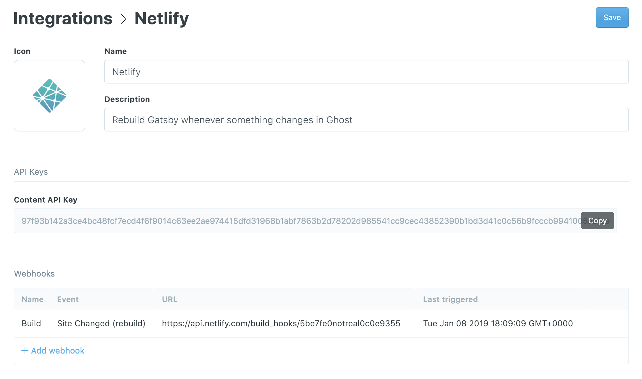 The official integration guide for Netlify explains how to set up outgoing webhooks in Ghost to trigger a site rebuild on Netlify. This means that any time you publish, update or remove any content in Ghost, the front end will automatically update.