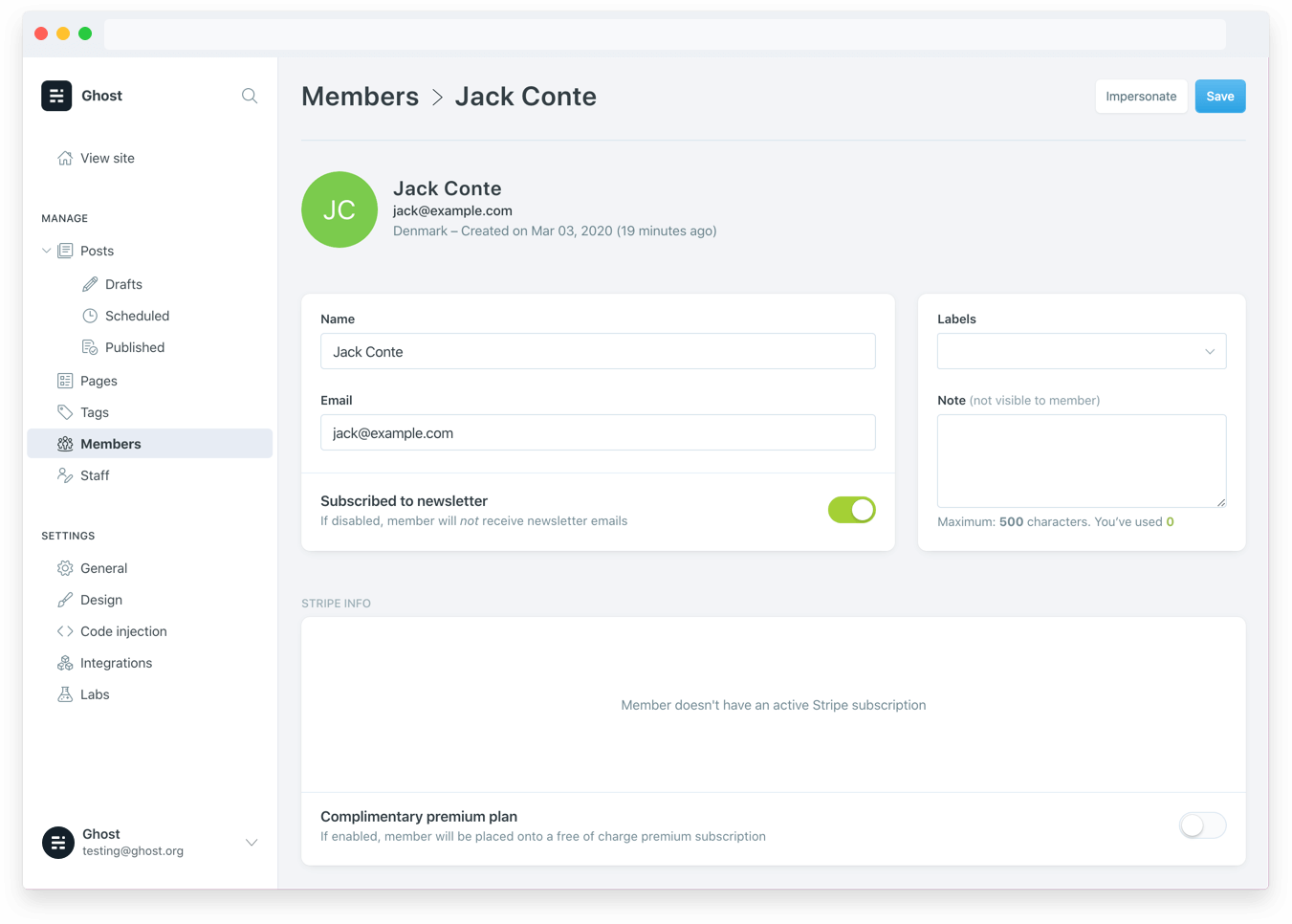Member location in Ghost Admin