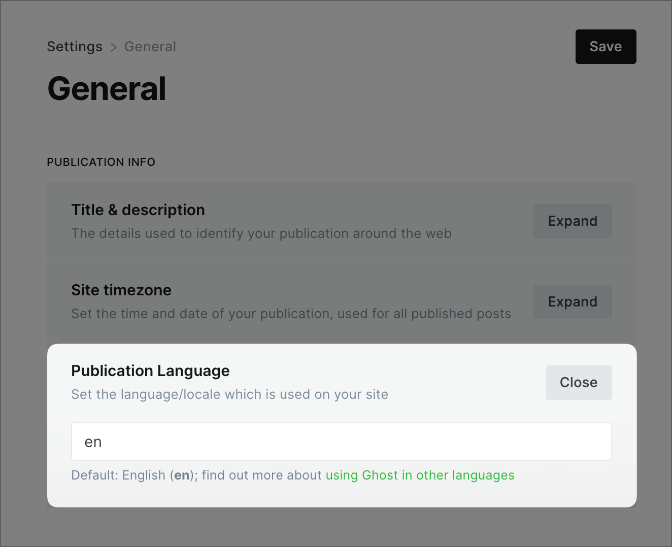 The following areas of Ghost can now be translated: