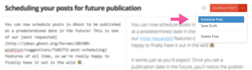 You can now schedule posts in Ghost to be published at a predetermined date in the future! This is one of our most requested features of all time, so we're really happy to finally have it out in the wild 🙈.