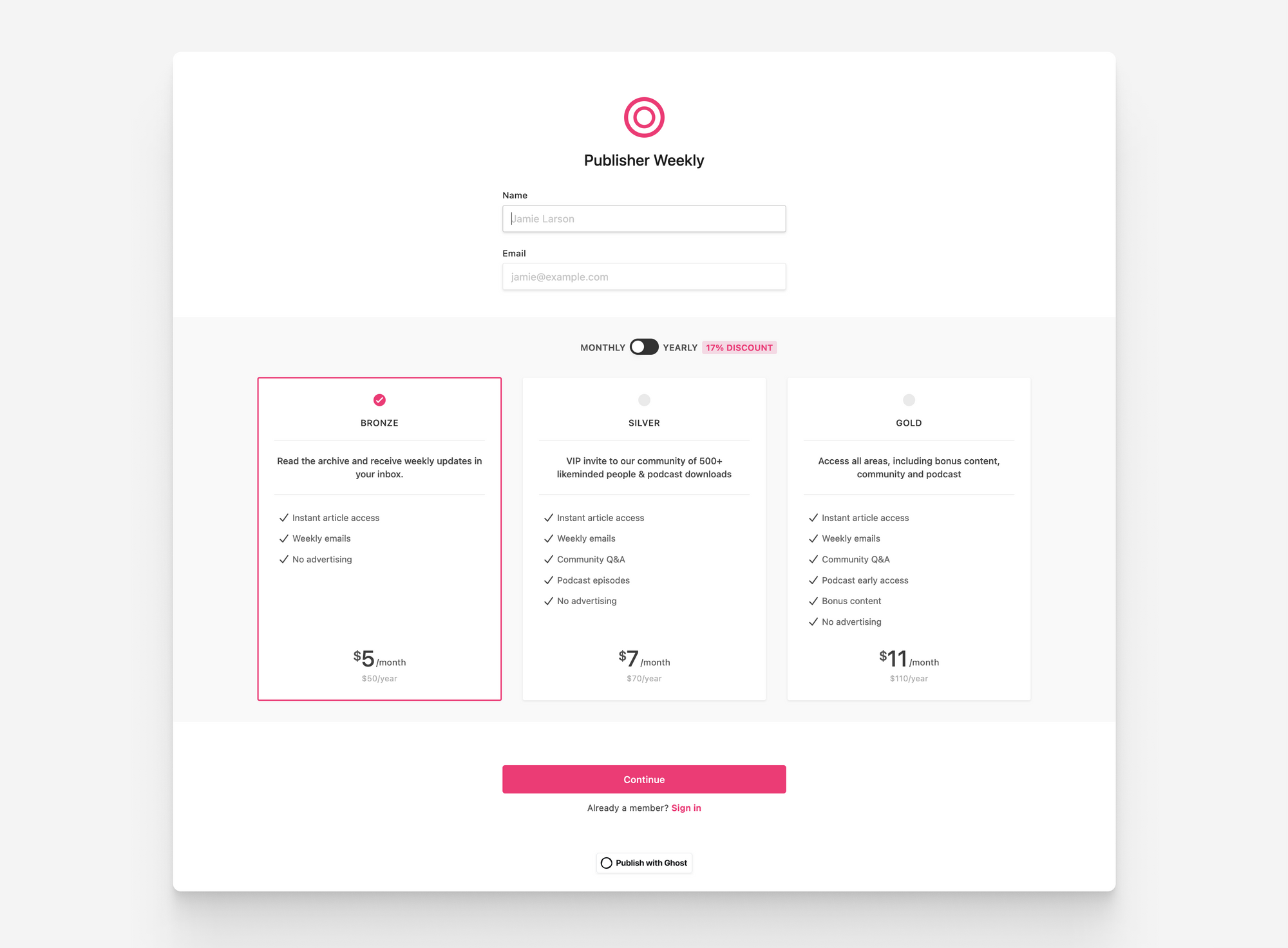 - Create tiers for different types of content (e.g. newsletter and podcast)