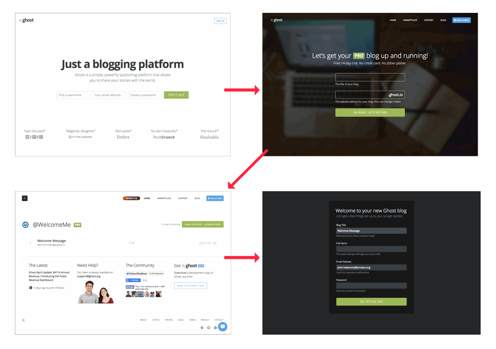 Hannah and I sat down a couple of weeks ago to have a look at any quick wins we could make in helping new Ghost users get up to speed faster. We’ve played with various points in the conversion funnel, but on this occasion there was one which was bothering Hannah in particular.