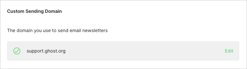 Ghost also includes support to optionally configure a custom sending domain for newsletters sent from your publication. This is useful for customizing the from-address of your emails to match your custom domain, or if your organization requires a DMARC policy to be configured with the domain activated on your Ghost(Pro) site.