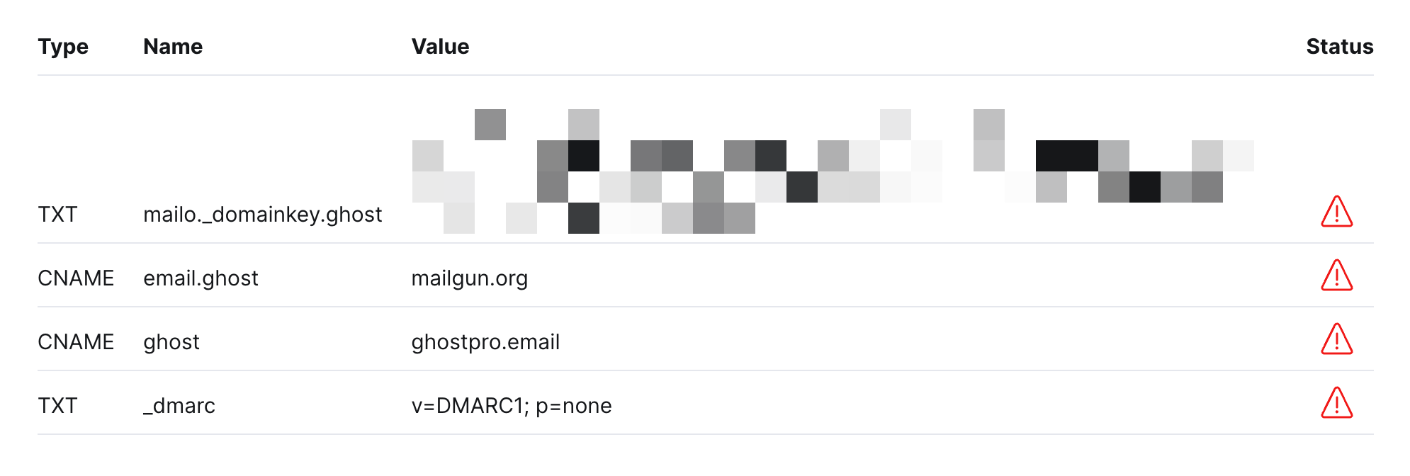 When you set up a new sending domain, you don’t have any reputation at all to start. Instead of trying to send all of the newsletters from your new sending domain, we’ll gradually warm-up the reputation by using that domain for a fraction of the recipients for your newsletter. Until the domain is fully warmed up, some recipients will receive newsletter emails from the ghost.io sending domain. This process takes approximately 6 weeks, and means that newsletters of any size can start to use a custom sending domain while maintaining their deliverability.