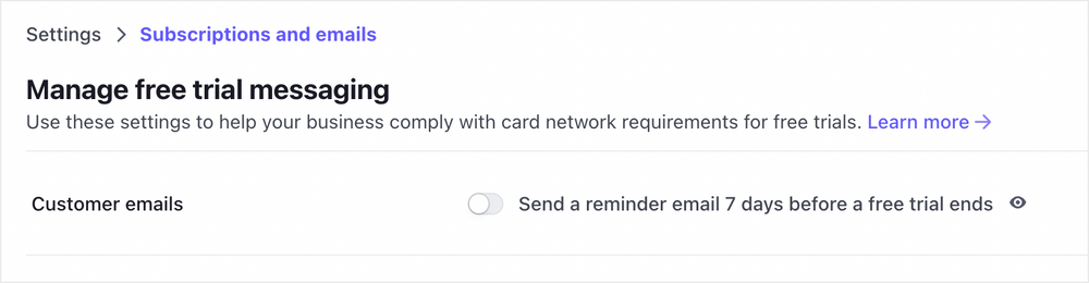 When offering carded free trials that automatically charge members at the end of the trial period, it is best practice to set up custom messaging reminding members when their trial is due to end.