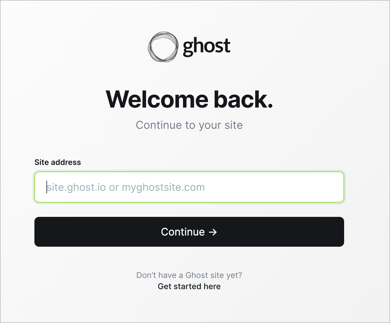 For example, you can login by going to yourdomain.com/ghost, OR, you can also use your ghost.io site address, subdomain.ghost.io/ghost. Either method will take you directly to your site's login page so that login credentials can be entered for access.