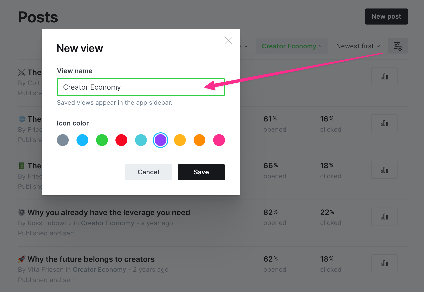 Filtering makes organizing and updating content easy. If you have a filtered view that you need to access quickly and often, created a Saved view: