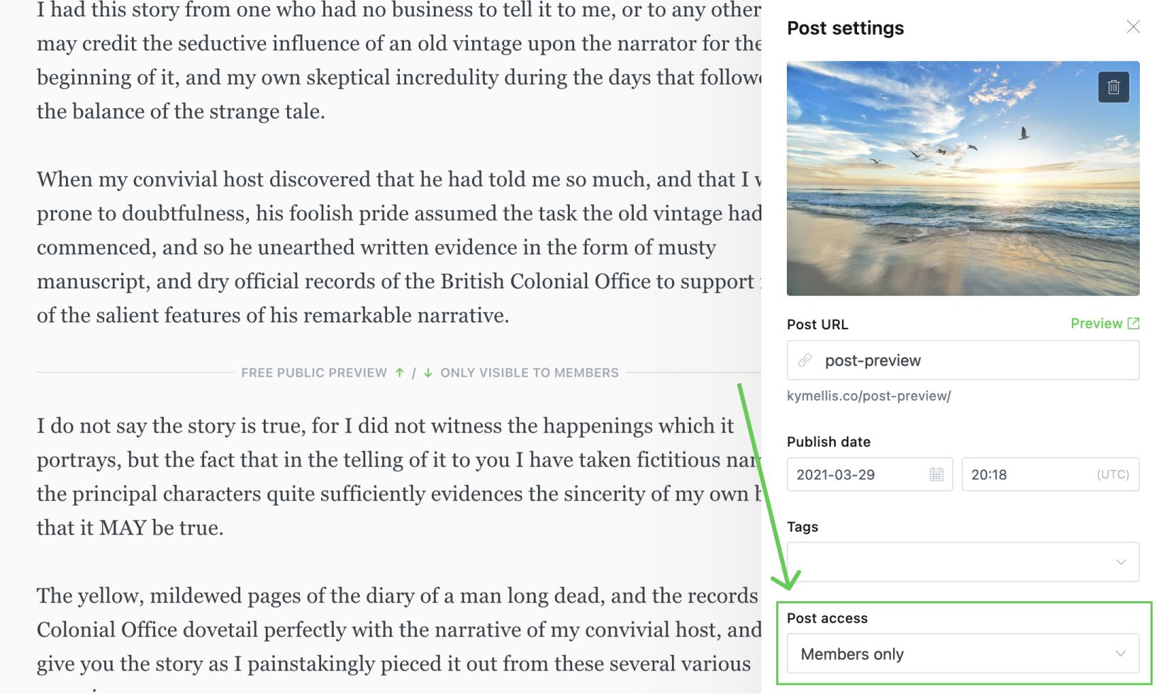 For example, when using Members only post access, logged out visitors can only see content above the preview on the web, while logged in members can see the full post content.