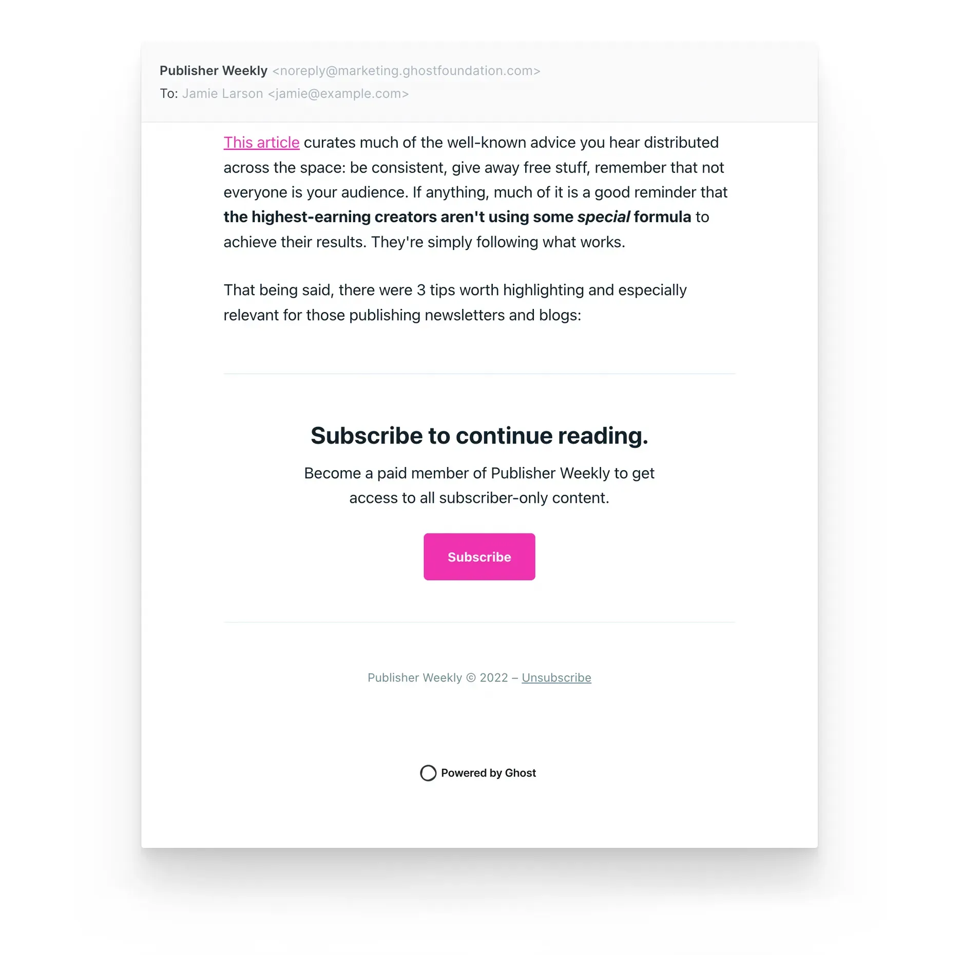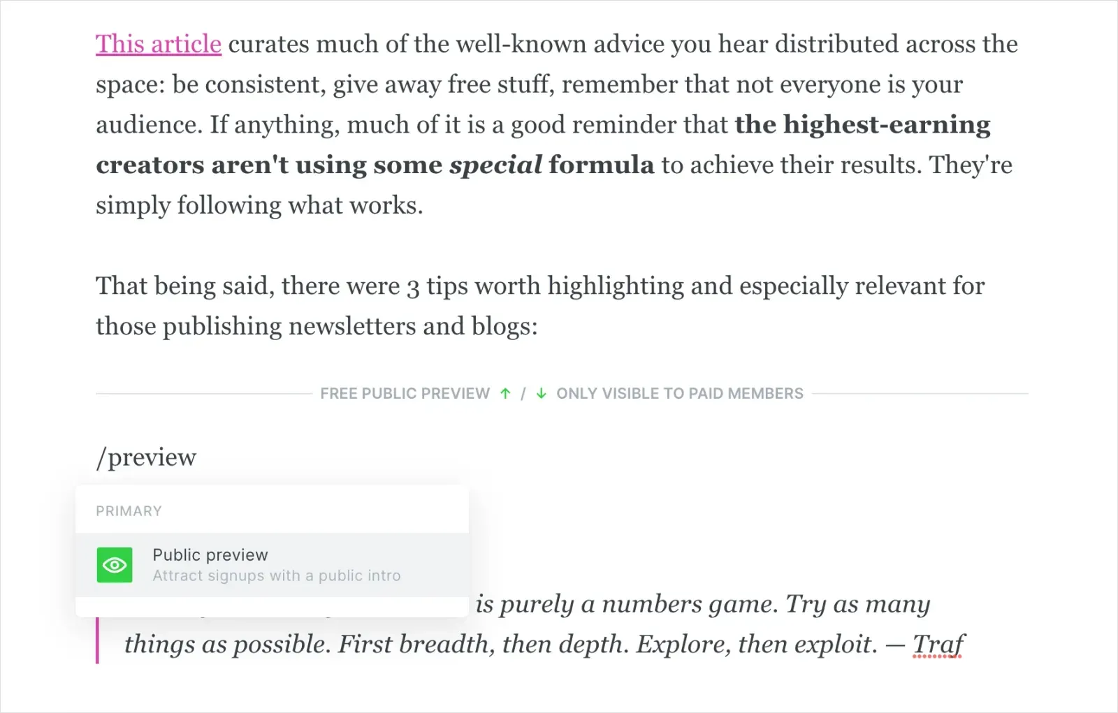 The public preview card can be used on any post, page or email newsletter, to make a distinction between public content which is visible to everyone, and member content which is only visible to logged-in members.