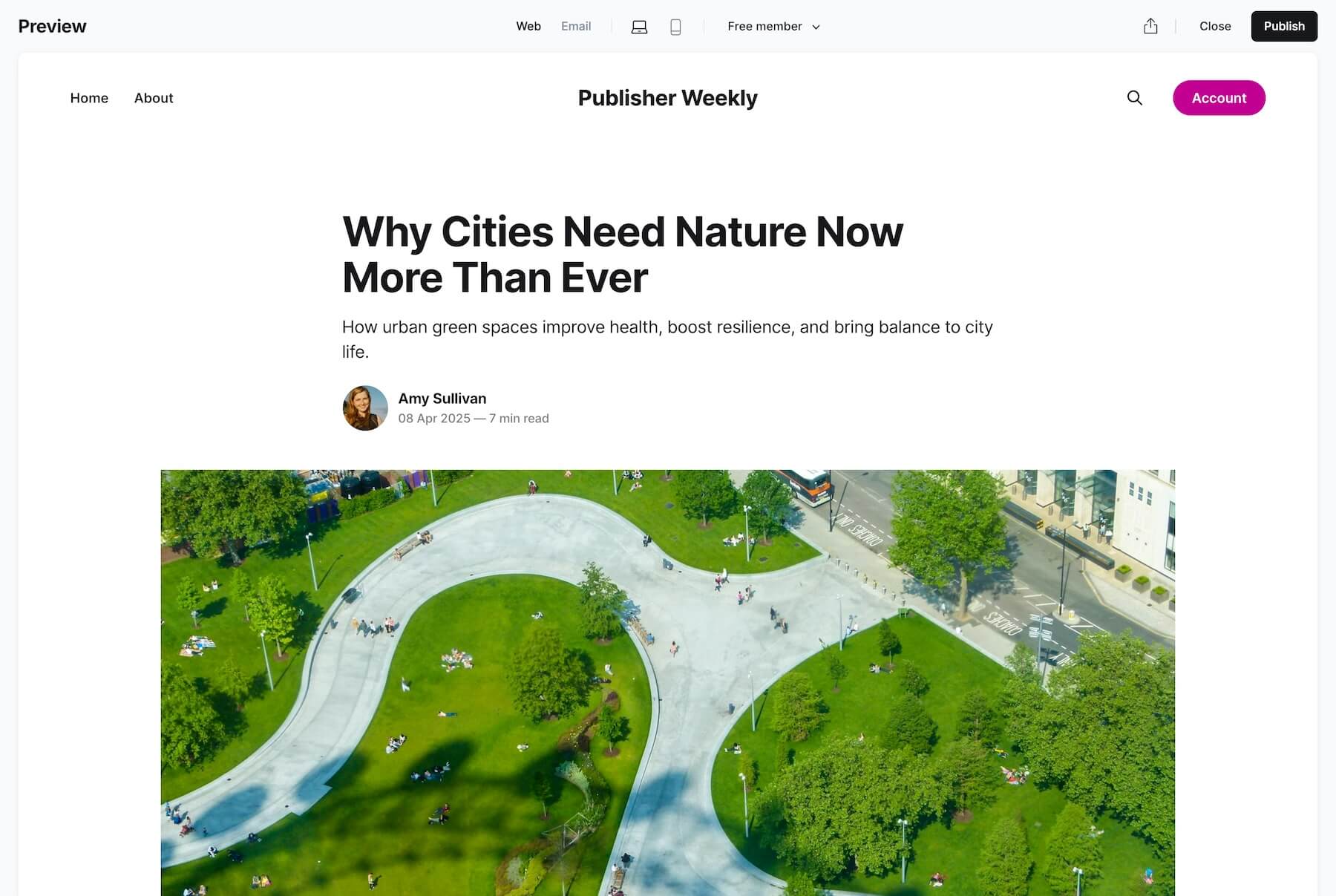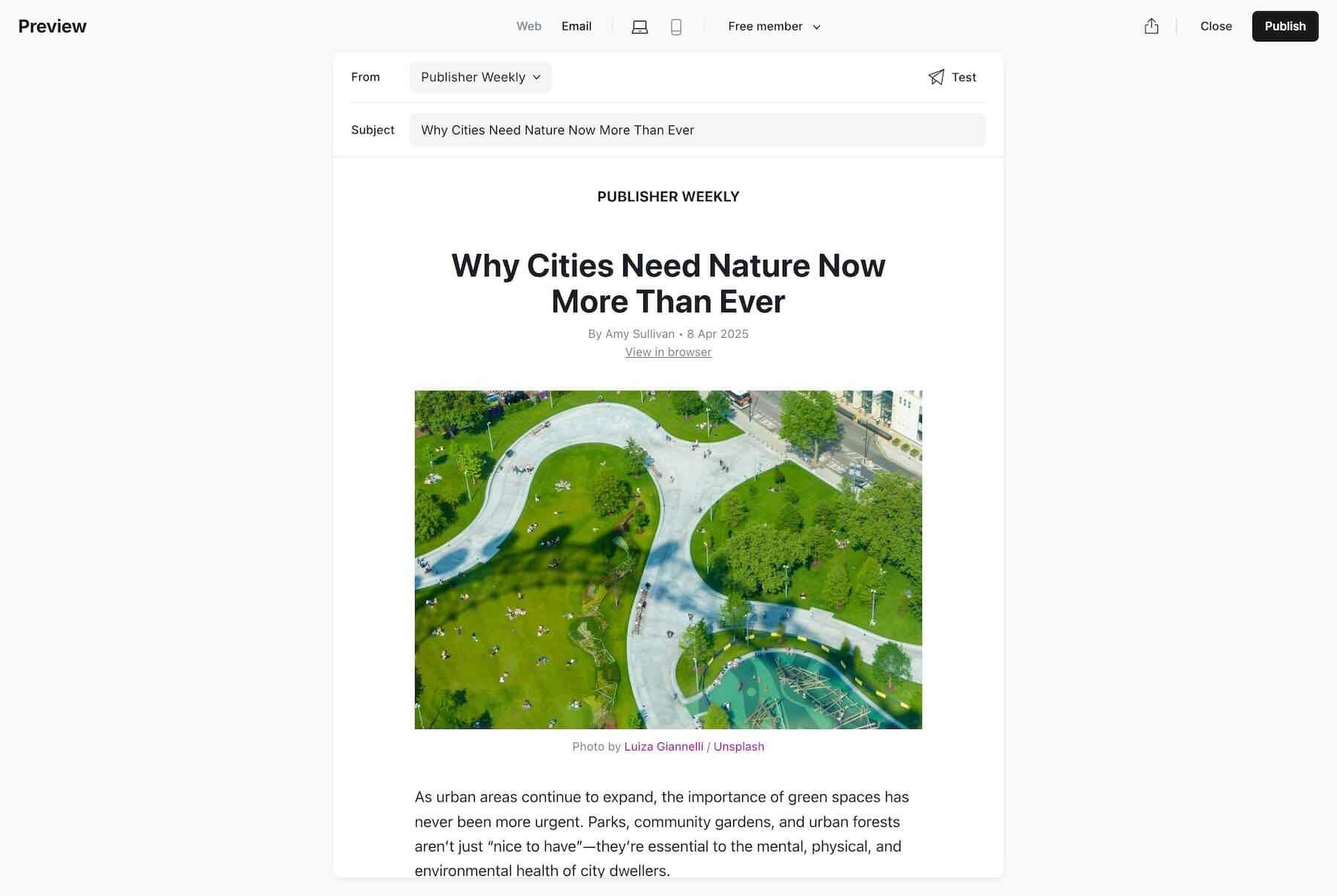 You can preview your content as a public visitor, free member, or paid member. To see how your email looks in an actual inbox, you can also send yourself a test email.