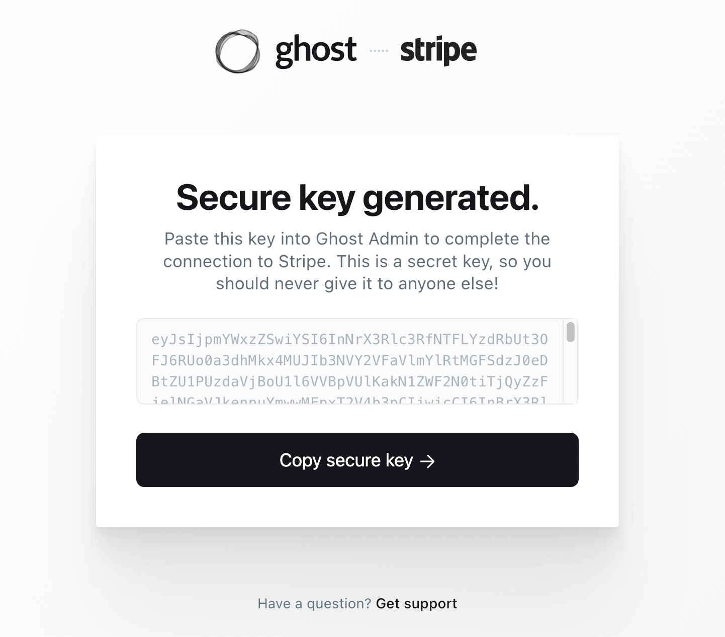 Copy the secure key generated to your clipboard, and go back to Ghost Admin:
