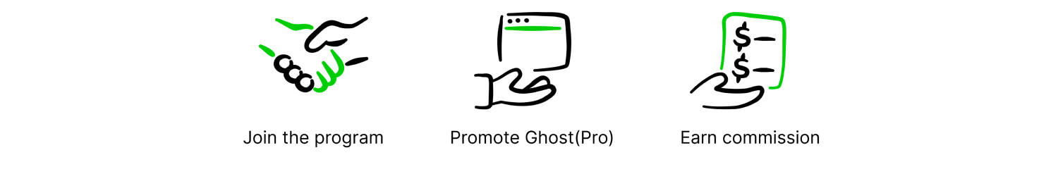 Whether you're publishing a newsletter, creating a YouTube channel, or working with clients as a developer — you can use our referral program to share Ghost with your audience, and earn a generous recurring commission for every successful referral you make.