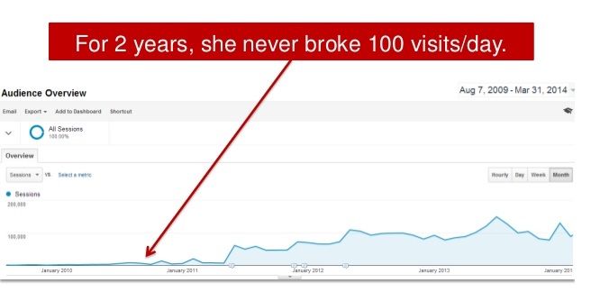 Then, during the third year, a few articles went viral, which brought mountains of new visitors to their site. And since Geraldine had been posting consistently for years, there was plenty of content for them to explore.