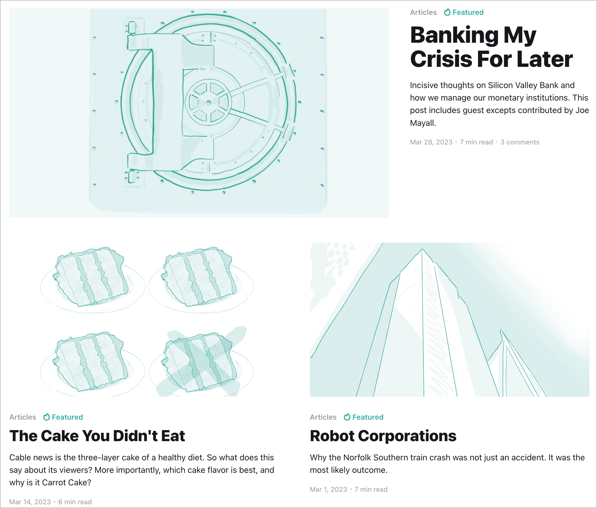- For The Interested: Extremely short posts sharing the latest ideas about career growth for creators, with each post focused on directing the reader to an article, video, or podcast episode.