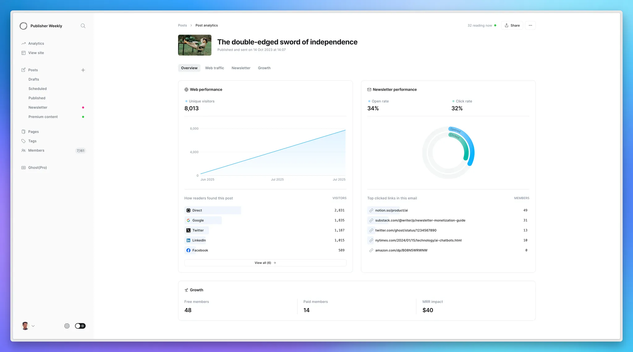 - Likes, comments, replies and upvotes to see how well your posts on social media platforms are performing