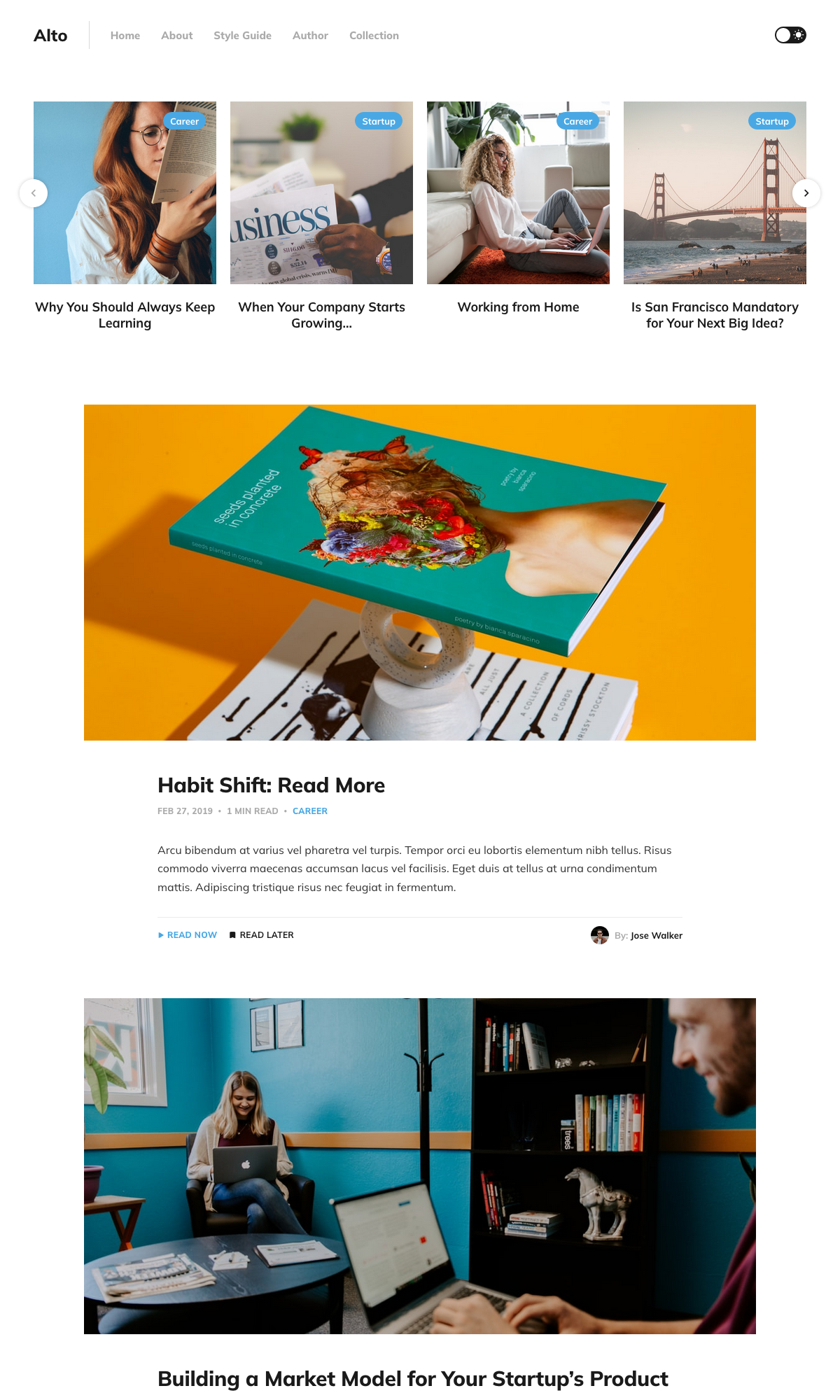 This is the most popular type of home page for publishers and a common home page structure that many Ghost themes make use of. A chronological content structure means that your newest posts are shown first.
