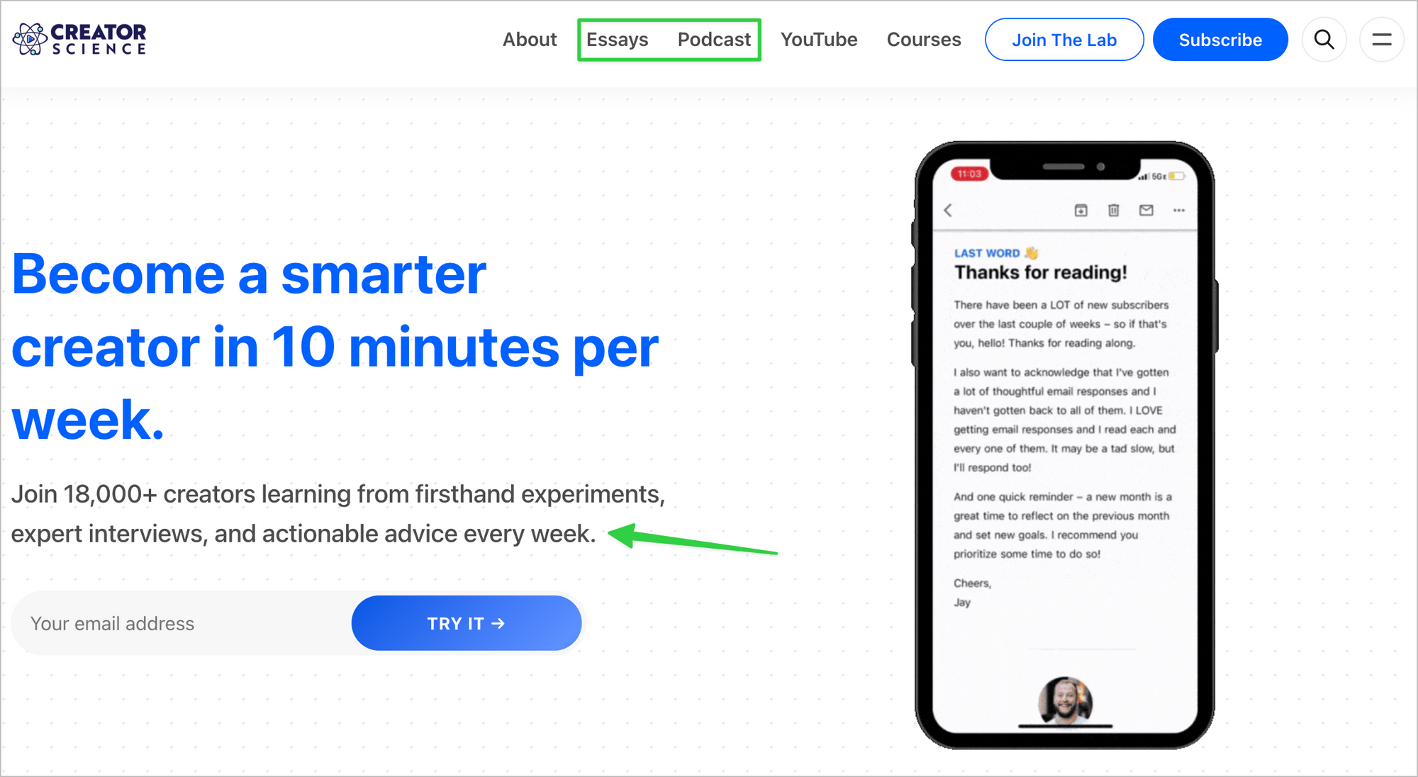 Jay is the entrepreneur behind Creator Science, delivering actionable advice for creators, and The Lab one of the most prestigious creator communities.