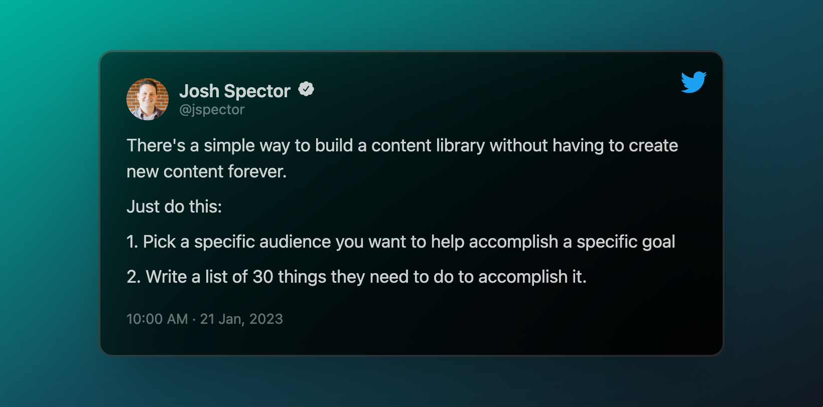 In order to draw people to a free newsletter, Josh began by publishing ideas where people were already reading content. Josh became a top writer on Medium while also growing a Twitter following of over 26k (discovery).