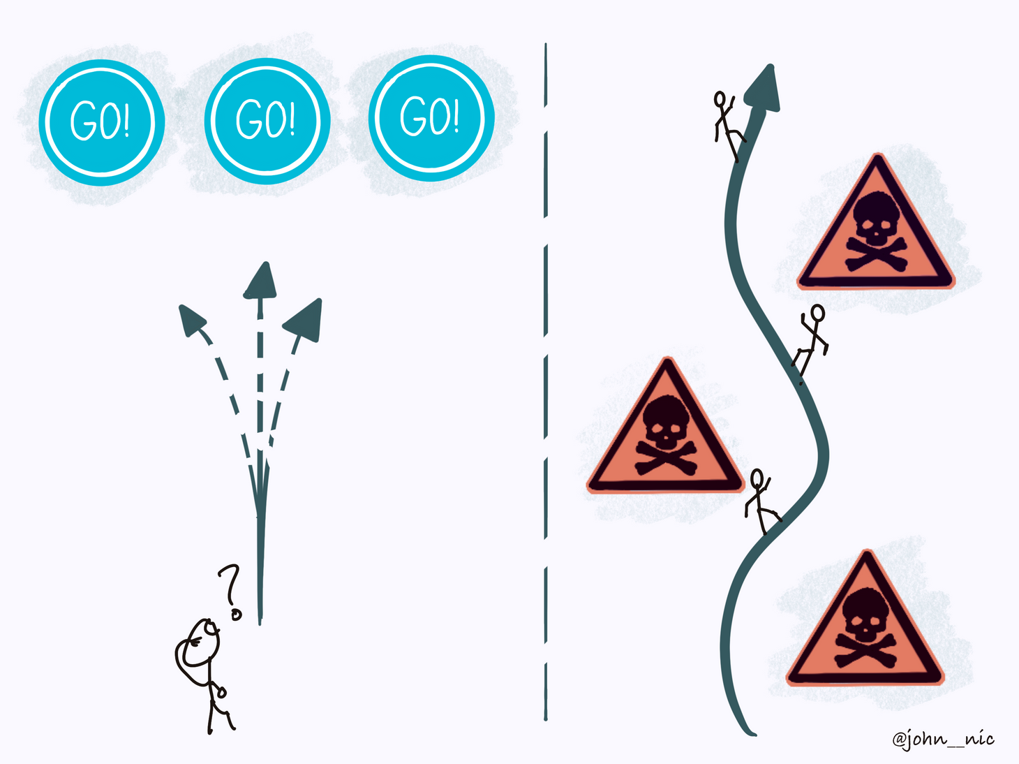 'Anti' is the new 'pro'. It's ok to break away from your own personal norm and get into a little bit of danger. Warning signs can give you just as much guidance as a green light. π¦