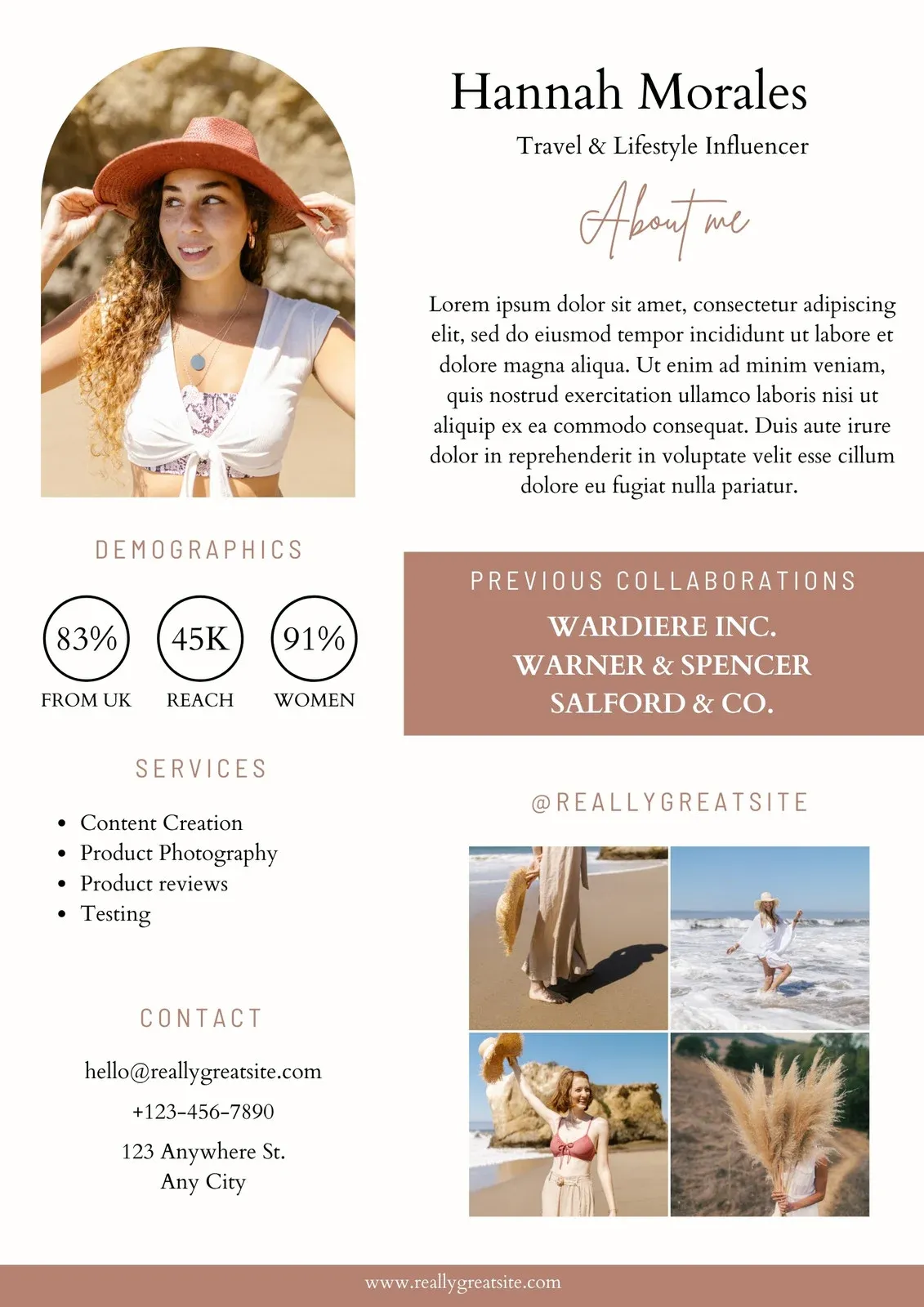 #3 Include any and all contact details in your kit so brands know how to find you. Items like your email address, website, social media accounts, and management info should all be readily available so you can keep coms open.