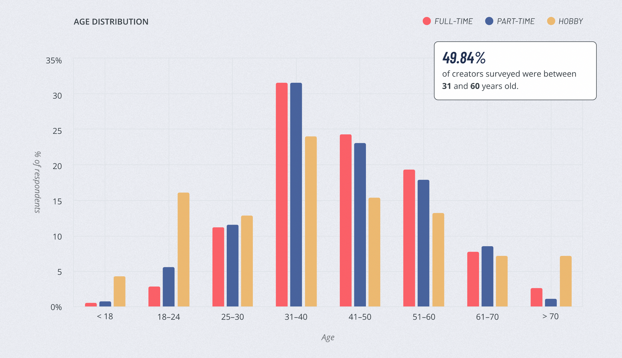 Finally, there is no age limit to success! While the creator economy can sometimes appear to favor younger makers, statistics show that opportunity is abundant across the board.