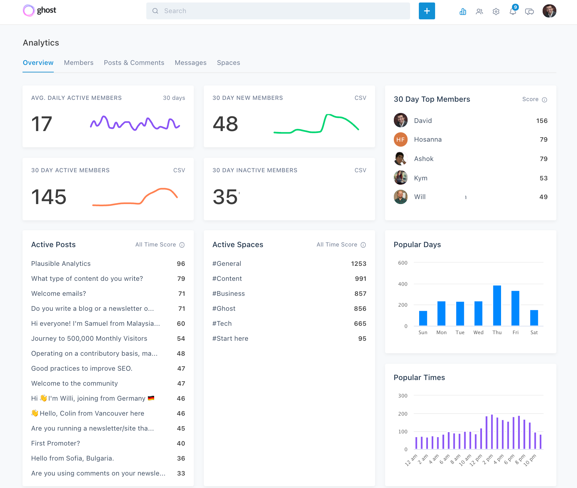 After that, the private community was promoted on the Ghost dashboard to extend the community out to our entire audience, to build the foundations of a healthy, productive community.