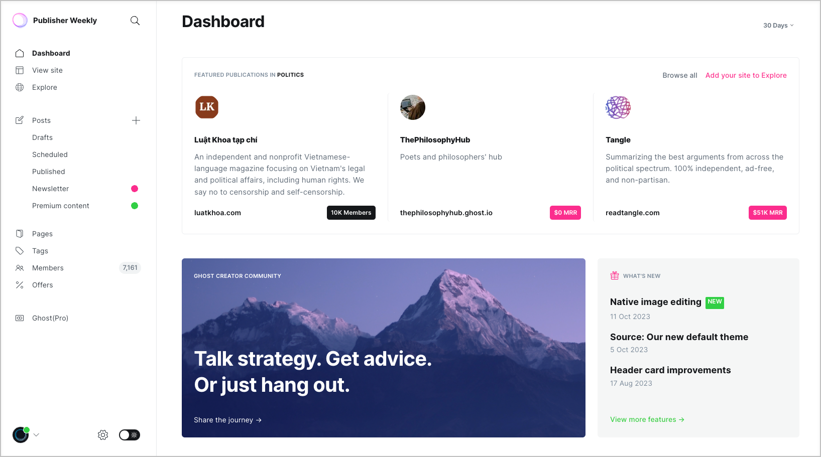 At Ghost, we launched a community for publishers and creators. It's a private community that anyone can apply to become a member of.