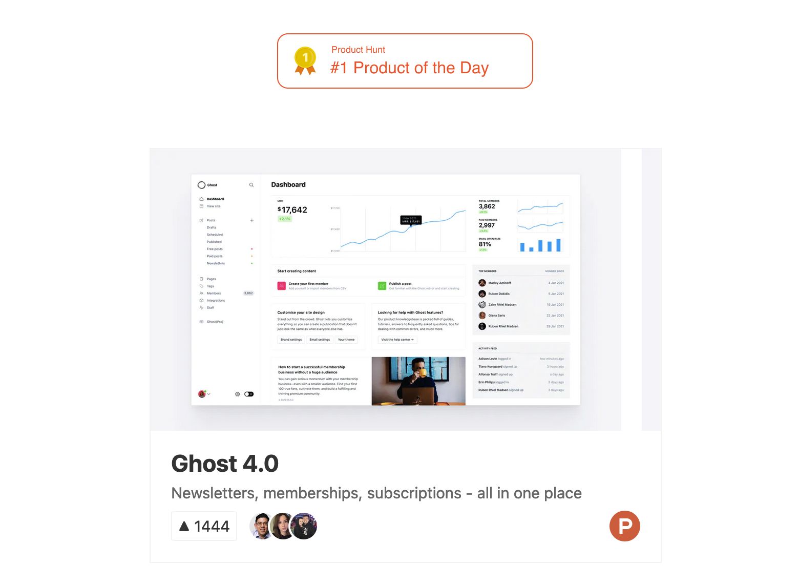 Find out what others are saying about Ghost 4.0, ask questions over at Product Hunt, or join our invite only community.