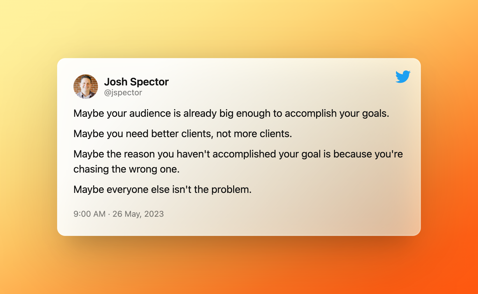 The goal is to have a balance between specificity and market size. Enough people to serve, and specific enough to stand out [...] if you can get this right, you’re going to create content that resonates deeply with the exact follower you want for your business. And guess what? Ideal followers become the best customers.