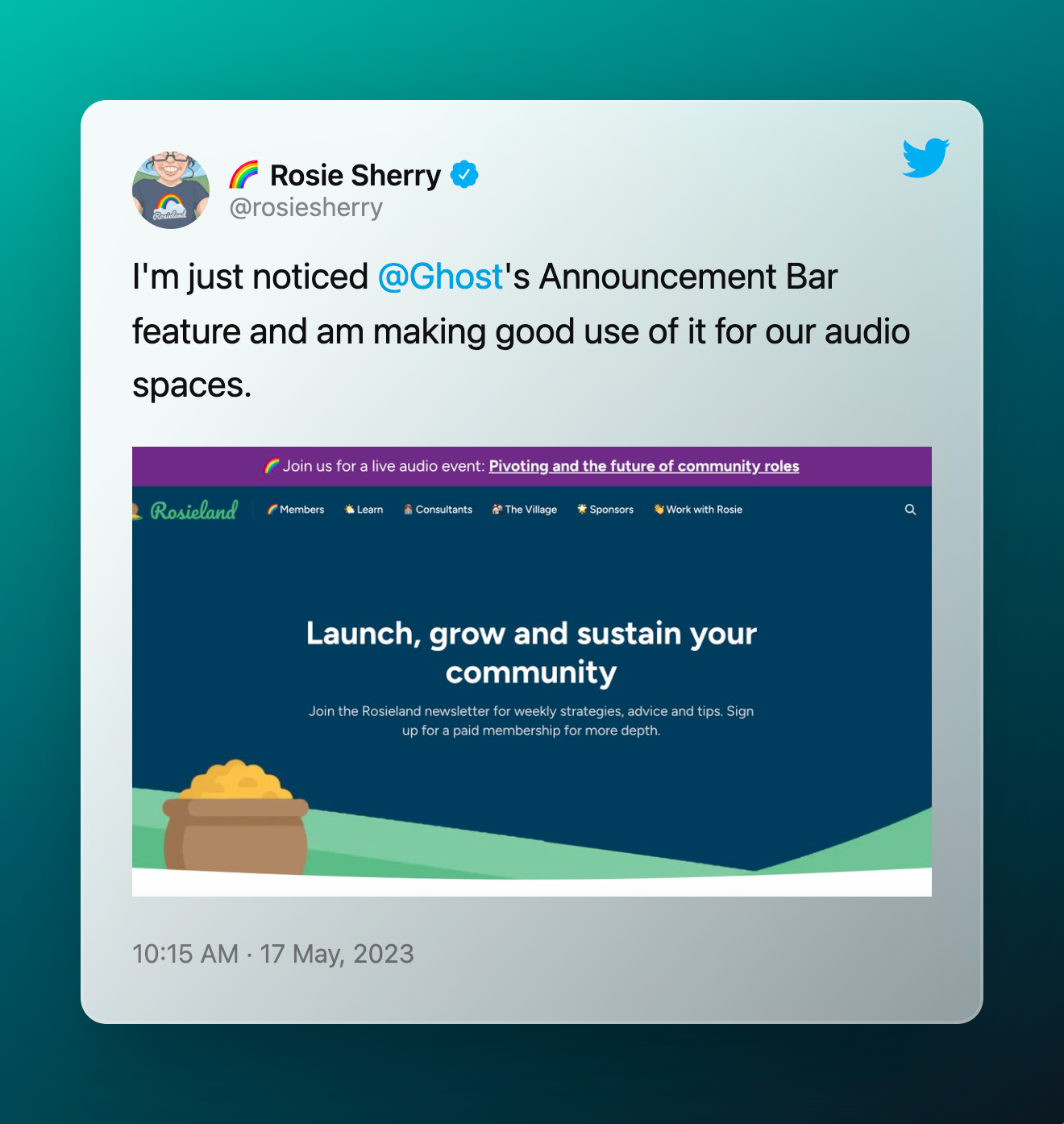 - Announcements — ICYMI, you can now add announcements to any Ghost site in a few clicks.