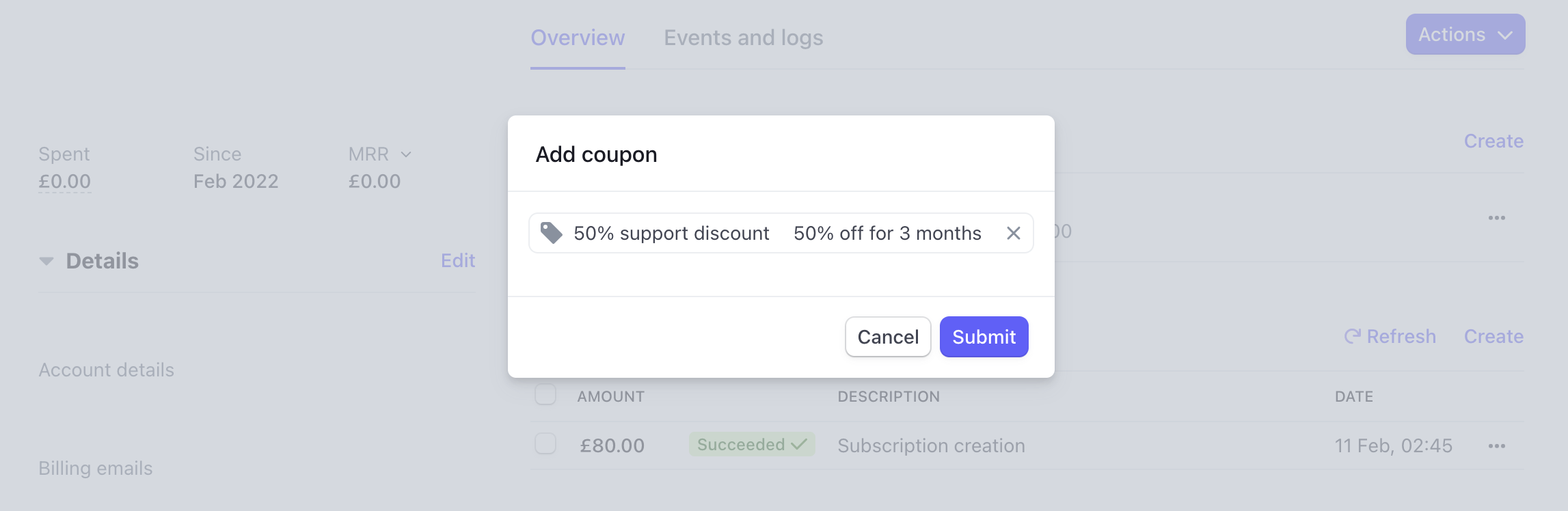 Knowing how to apply a discount to an existing customer’s subscription will help you manage several scenarios. For example, you may want to create short-term discounts for specific groups of customers or offer a discount as a gesture of goodwill in a support scenario.