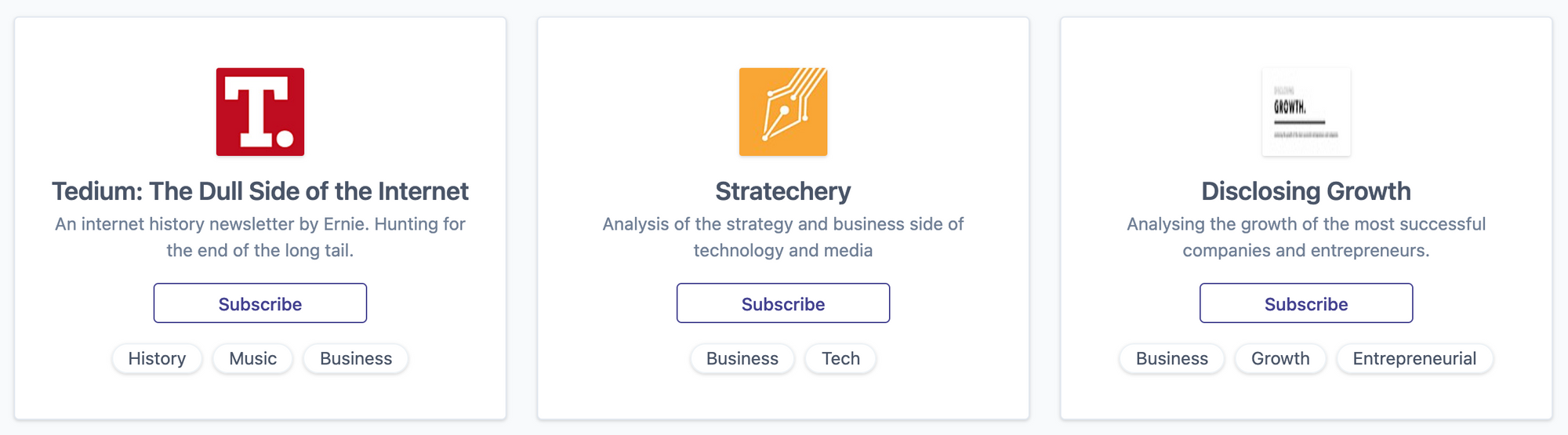 Directories accomplish this by providing searchable databases visitors can use to discover newsletters. These tools usually sort publications by specific categories such as travel, politics, food, crypto, and more.