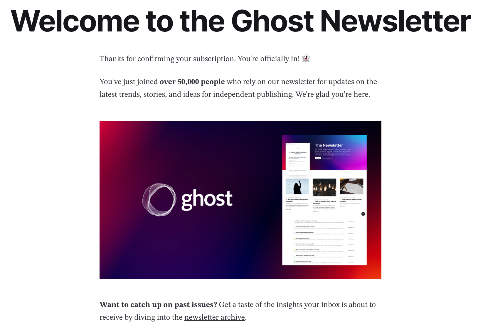 One example is our own Ghost Newsletter page. Our content utilizes images, humor, and opinions, so it was important to include elements along these lines.