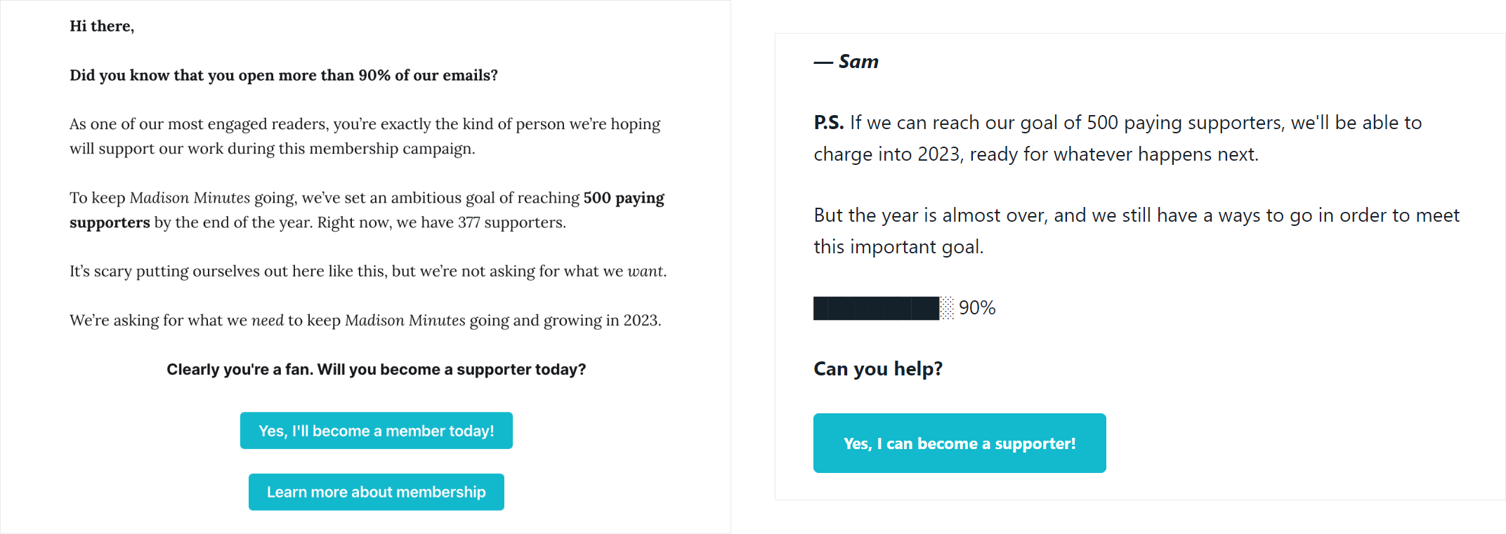 The response was overwhelmingly positive. Within a month of delivering their ask, Madison Minutes saw a 40% increase in paid members, and a 44% increase in MRR (monthly recurring revenue).